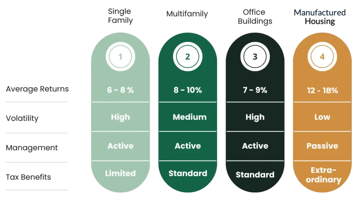 MHCs outperformed every real estate sector for three decades. With approximately 8% of the U.S. population living in manufactured homes and virtually no new communities being built, the math only gets better.